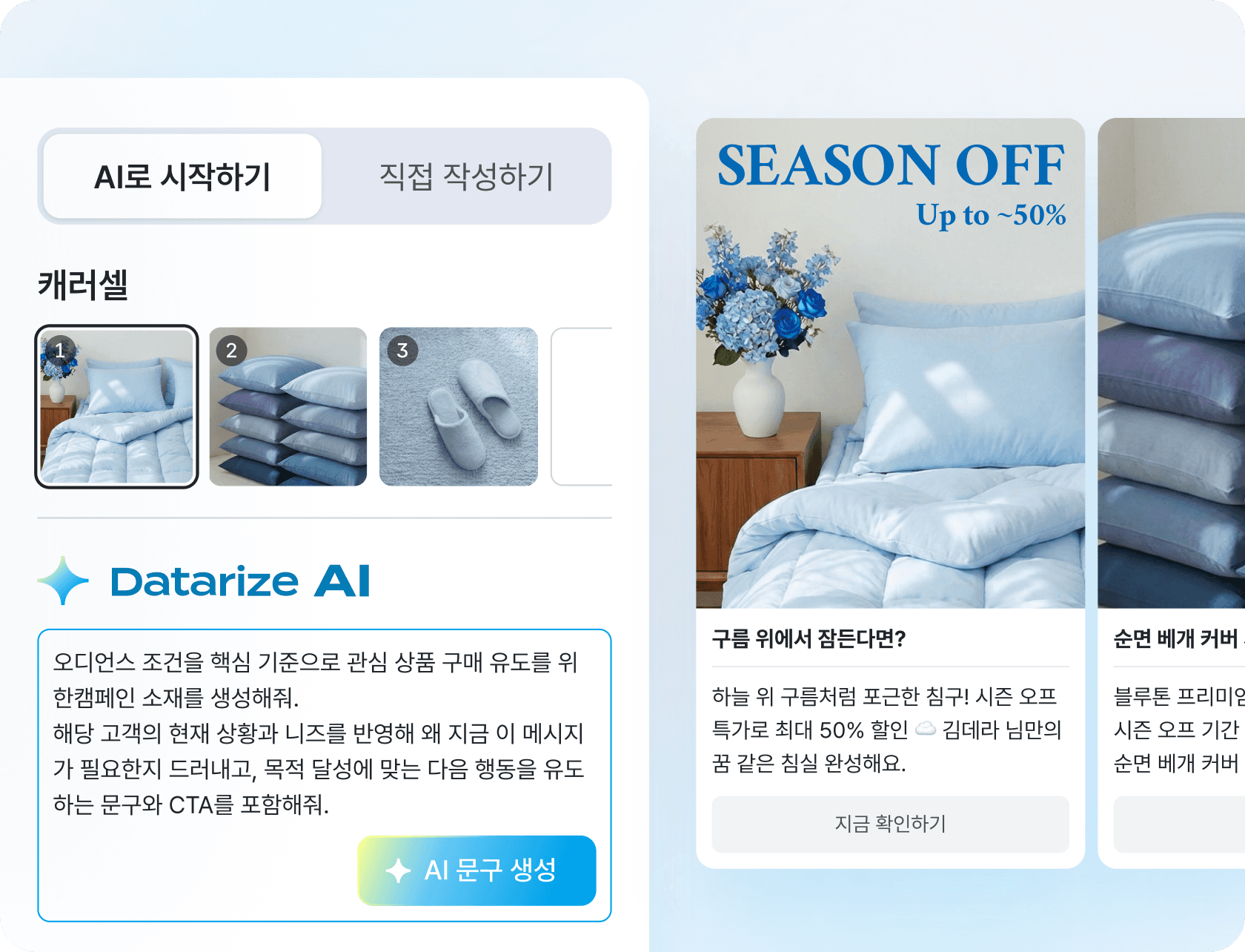 CRM에서 쌓은 행동 데이터를, 고객이 사이트를 탐색하는 그 순간까지 하나로 연결하세요.