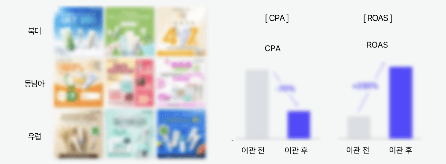 💡사례 | O사 글로벌 캠페인 매드업은 글로벌 캠페인을 진행할 때 카테고리와 국가별 소재 톤앤매너를 철저히 분석한 뒤 제작을 진행합니다. 실제 캠페인에서는 국가별 소재 인사이트를 사전에 검토해 현지 반응에 맞춘 크리에이티브를 제작했고, 그 결과 CPA와 ROAS가 눈에 띄게 개선되었습니다. ![]()