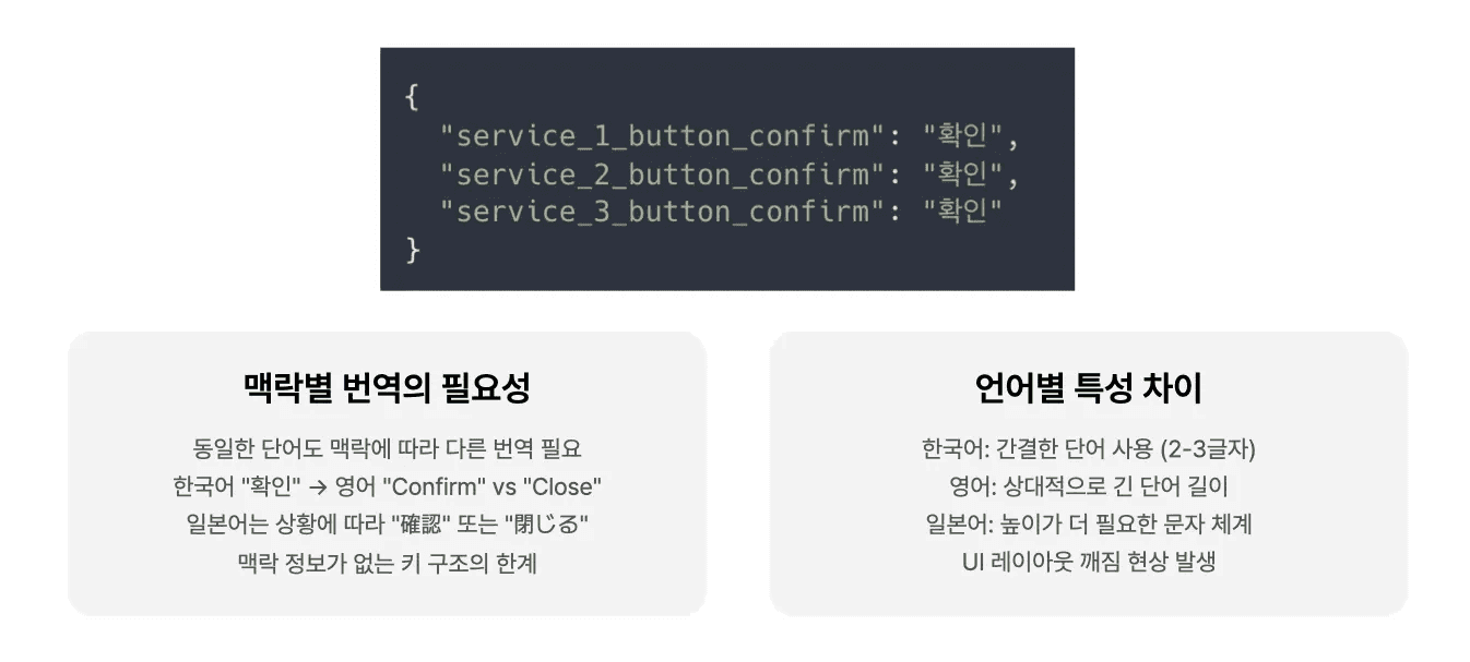 처음 다국어를 도입했을 때는 그저 “언어팩을 넣으면 되겠지”라고 생각했습니다. 하지만 곧 문제가 드러났습니다.