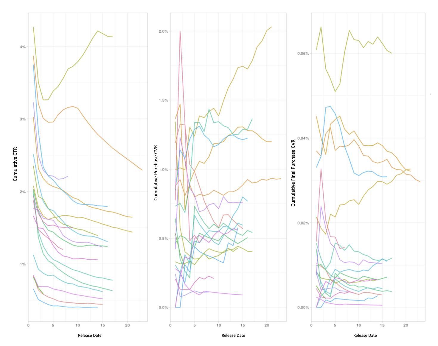 Do you wish to find out trending new products? Checking cumulative CTR and Purchase CVR from the product launch date will be helpful.