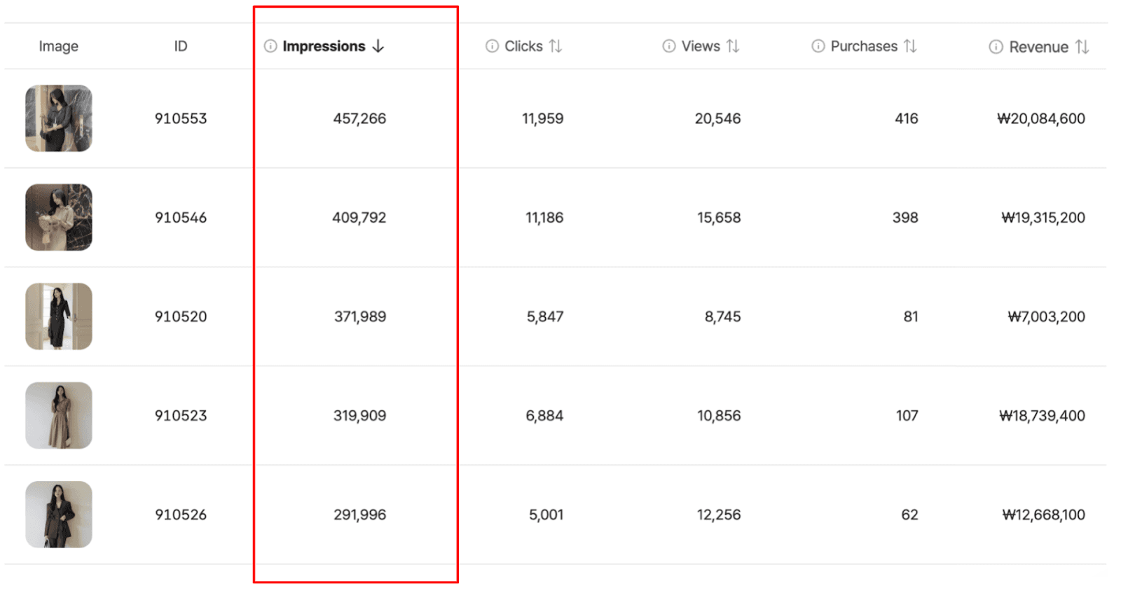 During high-traffic seasons like Black Friday or Cyber Monday, impressions surge. Use impression efficiency (not just revenue) to decide which products deserve the spotlight.
