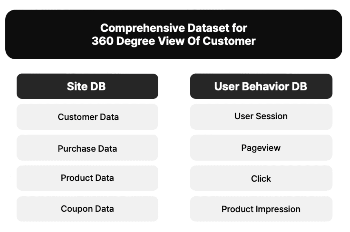 [Foundational data aggregation across Site DB and User Behavior DB for a complete customer view]