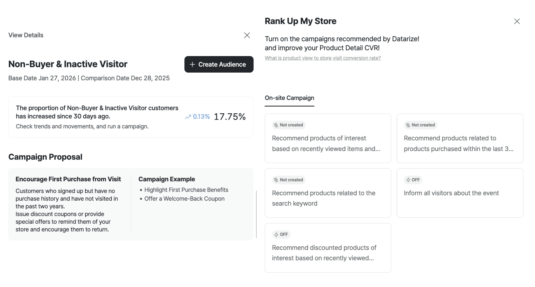 [Datarize’s AI-powered campaign recommendations, generated from site behavior and predictive insights—ready to launch in one click]