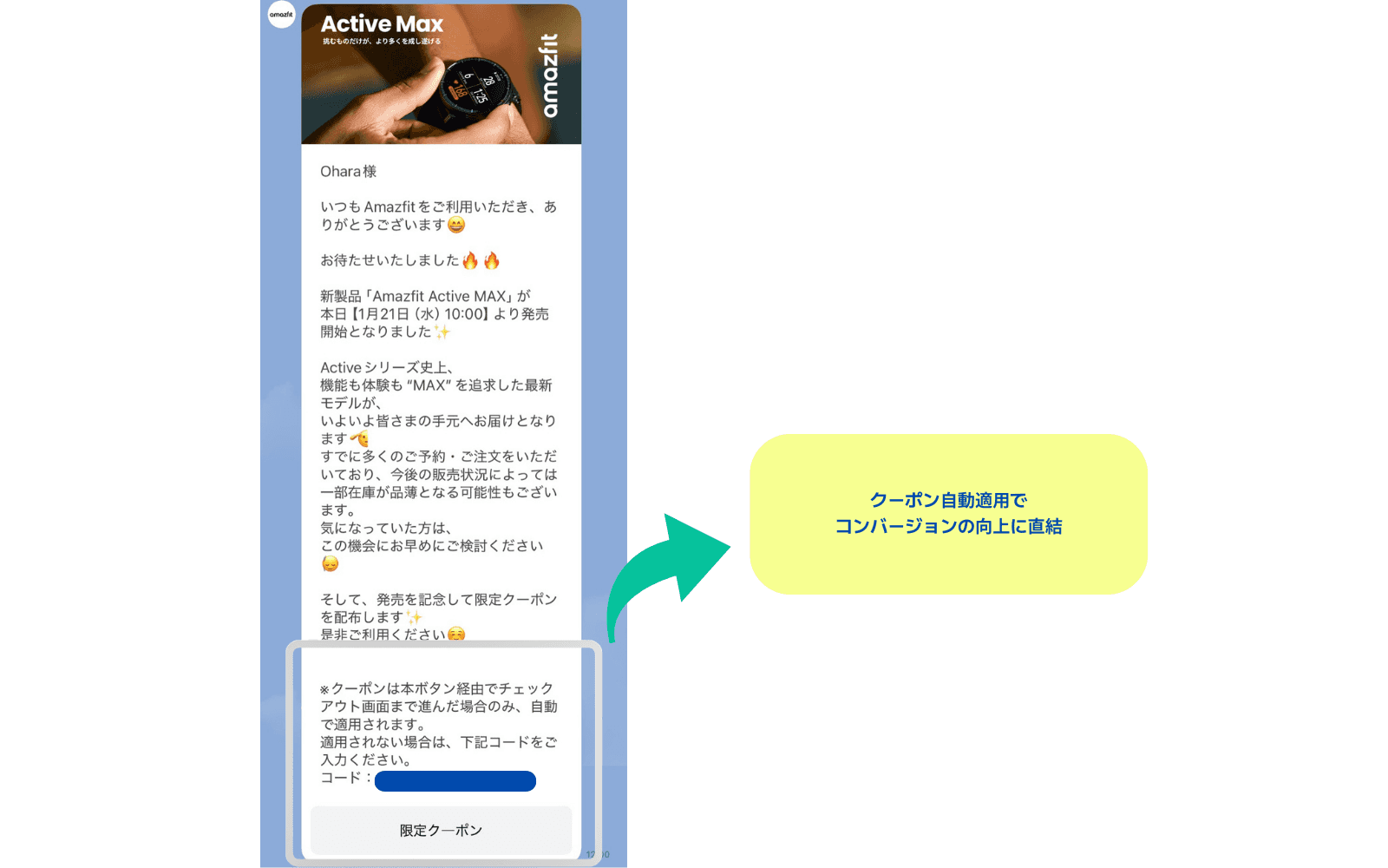 特に高い成果が出たのが、イベント形で実施したクーポン自動適用型メッセージです。