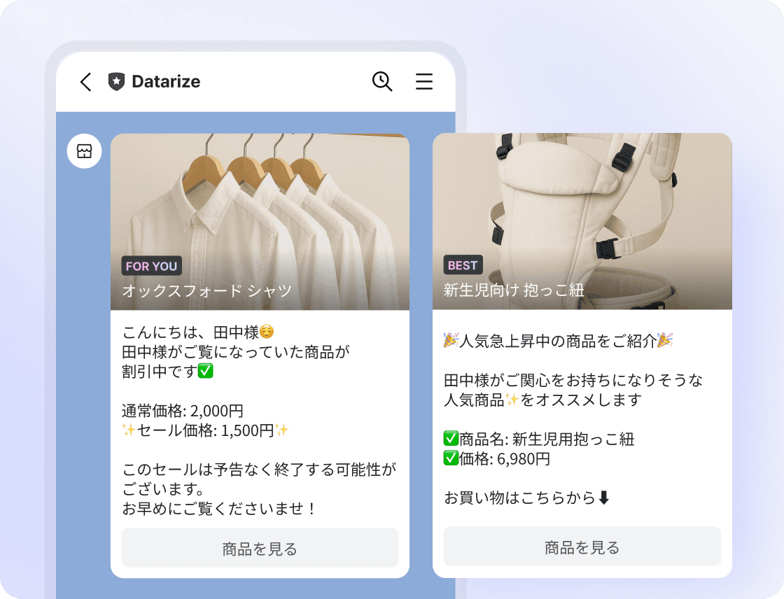 ”Datarizeは顧客行動に基づいて自動的にメッセージを送信するため、多くのリソースをかけなくても毎日適切にターゲティングされたメッセージを届けることができます”