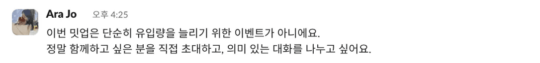 이제 이번 밋업을 통해 “이 팀이라면 나도 한번 달려보고 싶다”는 마음이 생기면 좋겠어요. 기술보다 먼저, 사람과 방향이 맞는지를 확인하고 싶은 자리가 될 거예요.