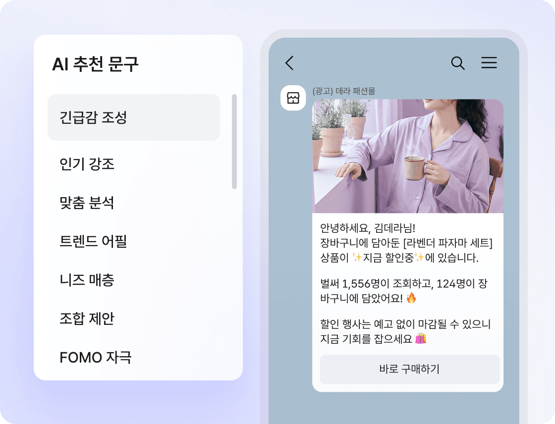 일반 메시지 대비 전환율이 두 자릿수 상승하며 탁월한 성과를 기록했습니다."