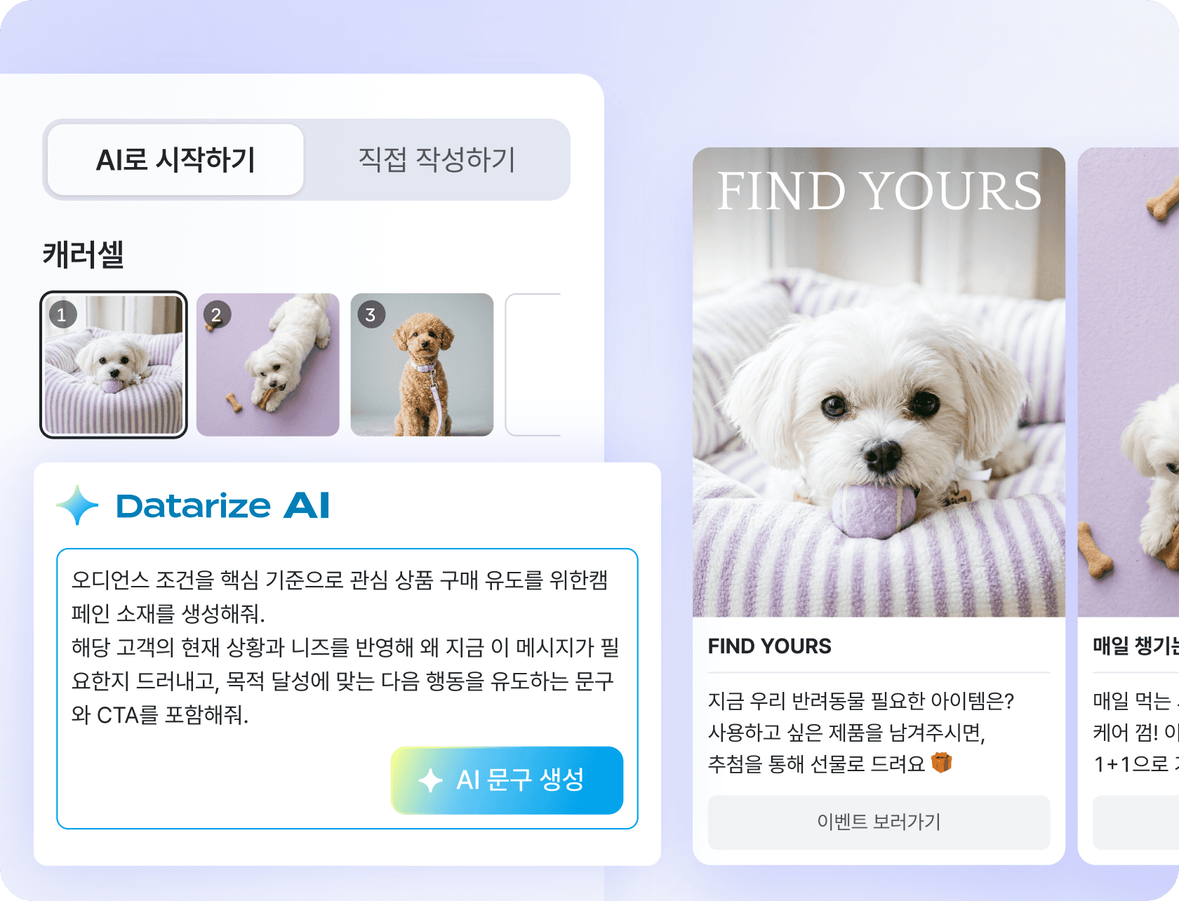 AI와 대화하듯 요청하면, 캠페인과 상품 이미지, 브랜드 톤앤매너를 분석해