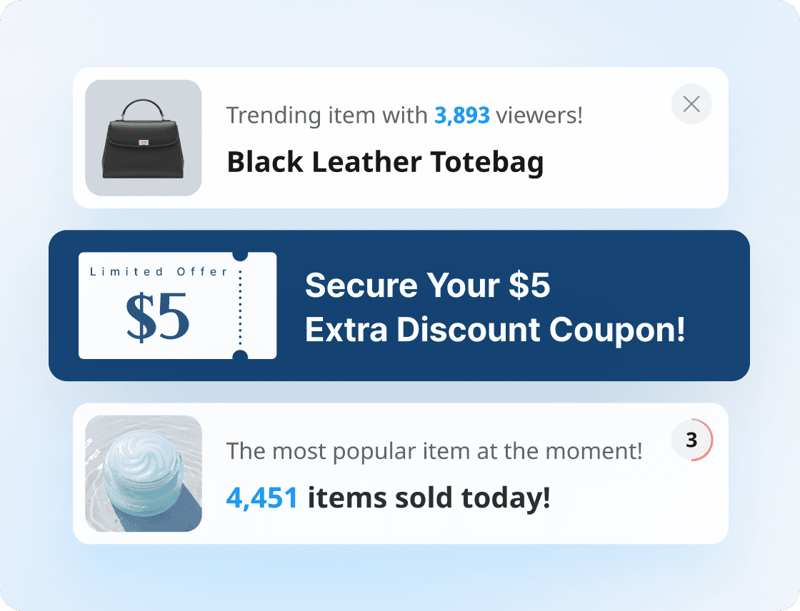 Run goal-driven banners—recommendations, urgency, social proof—perfectly timed to every customer moment.